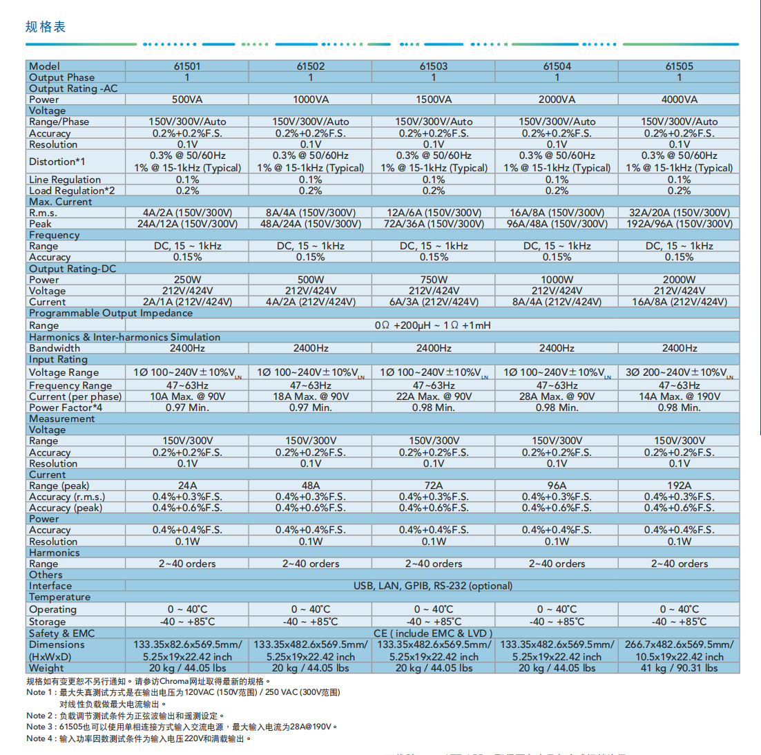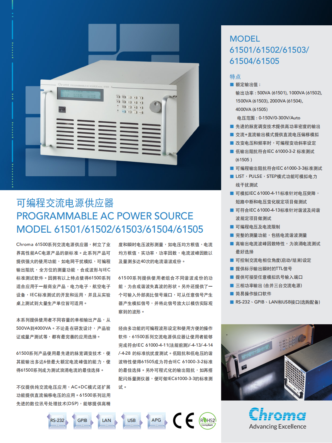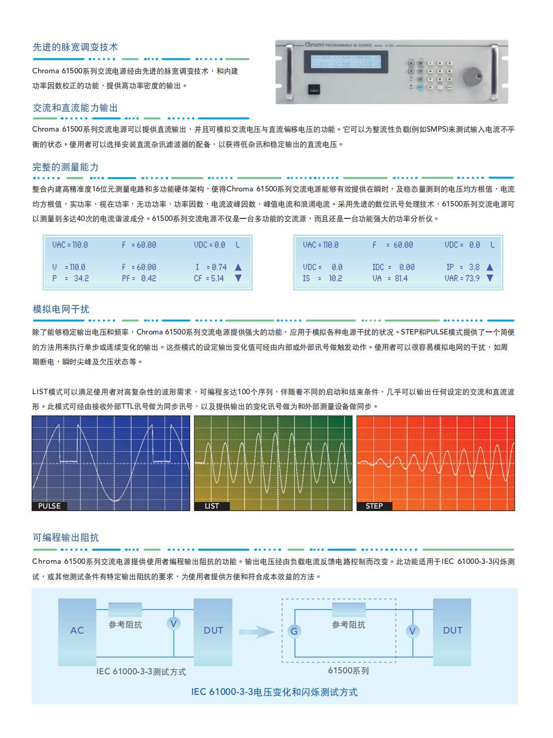 Chroma进阶可编程交流电源MODEL61505