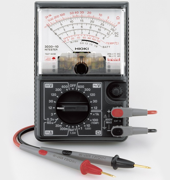 电阻量程0 to 3 kΩ ( center scale 30 Ω), R x 1, R x 10, R x 100, R x 1k