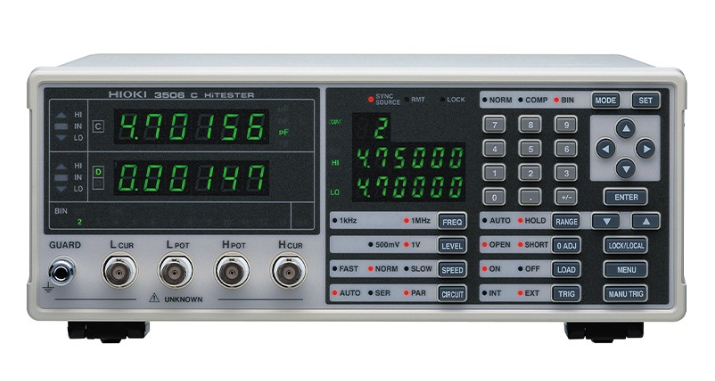 对应1MHz测试, 低容量,高精度,高速测试。 C、(tan δ), Q测试,低电阻测量 测试源频率:1kHz,1MHz 测量时间:1.5ms(1MHz) RS-232C,GP-IB。