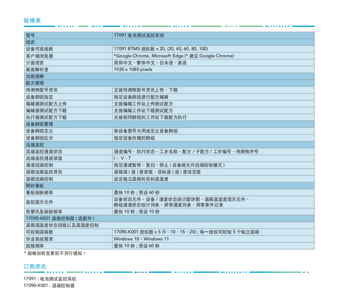 名  称:电池测试监控系统MODEL 17091