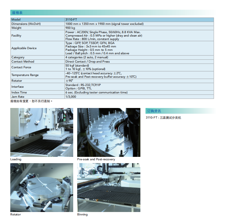 名  称:三温测试分类机MODEL 3110-FT